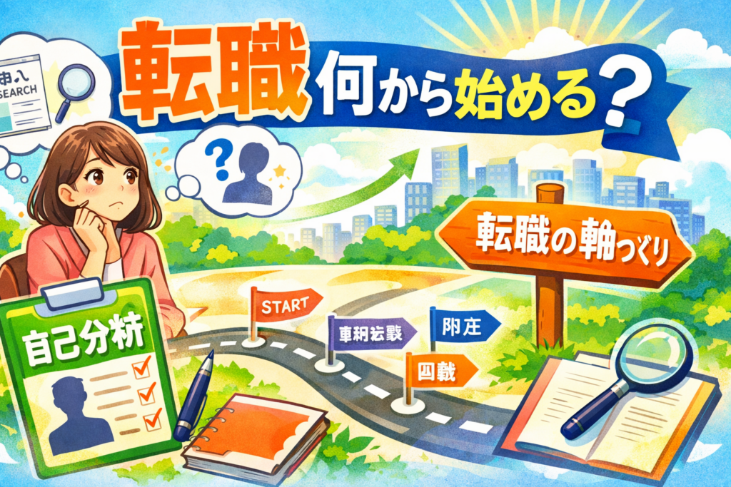 「転職したいけど、何から始めればいいのかわからない」——この記事にたどり着いたあなたは、まさに今そんな状態ではないでしょうか。結論から言えば、転職活動の第一歩は「自己分析」と「転職の軸を決めること」です。いきなり求人を探すのではなく、まず... -