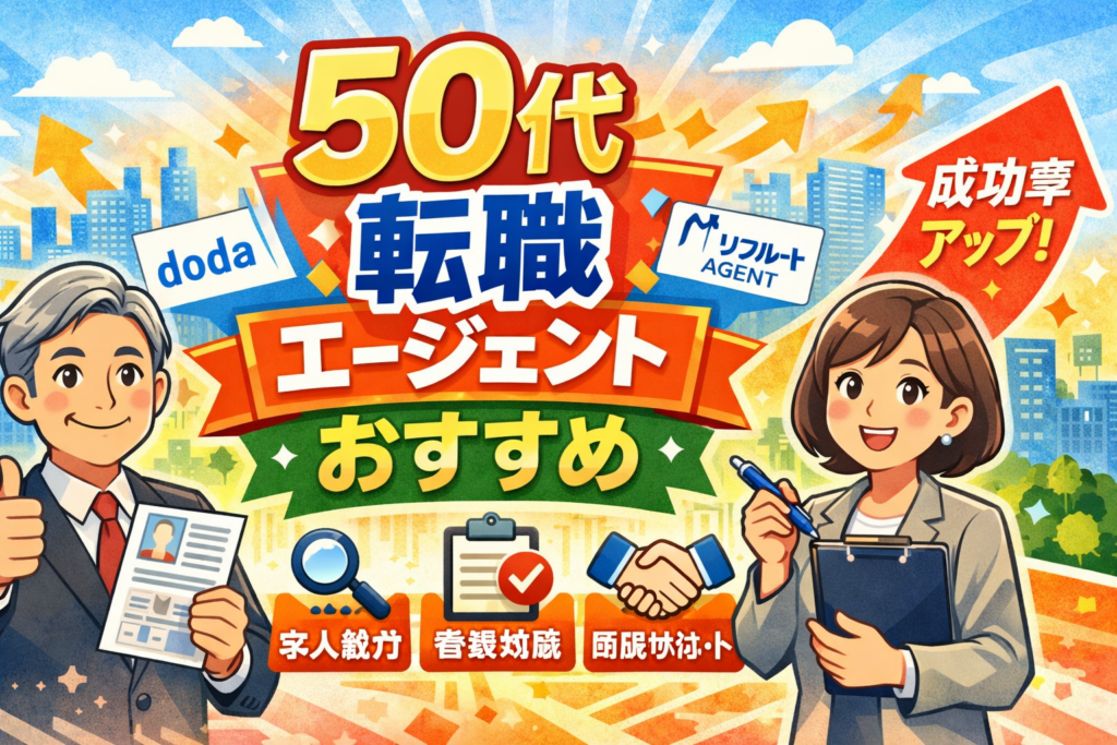 50代転職エージェントおすすめ6選|2026年最新の成功率データ・口コミ・選び方を徹底解説 50代の転職は「求人が少ない」「書類選考が通らない」と不安に感じる方が多いですが、適切な転職エージェントを活用すれば成功率を大幅に高められます。本記事では... -