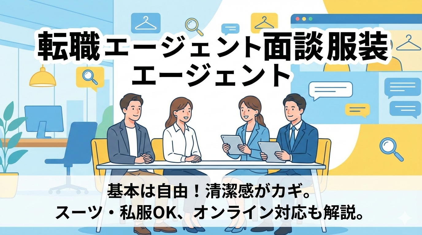 転職エージェントとの面談を控えて「何を着ていけばいいの?」と悩んでいませんか。結論から言うと、面談の服装は基本的に自由で、スーツでも私服でもOKです。ただし、清潔感のある服装で臨むことがキャリアアドバイザーからの第一印象を左右します。本記事では、男女別のおすすめコーディネートからオンライン面談の注意点、NG服装まで、現場の本音を交えて徹底解説します。