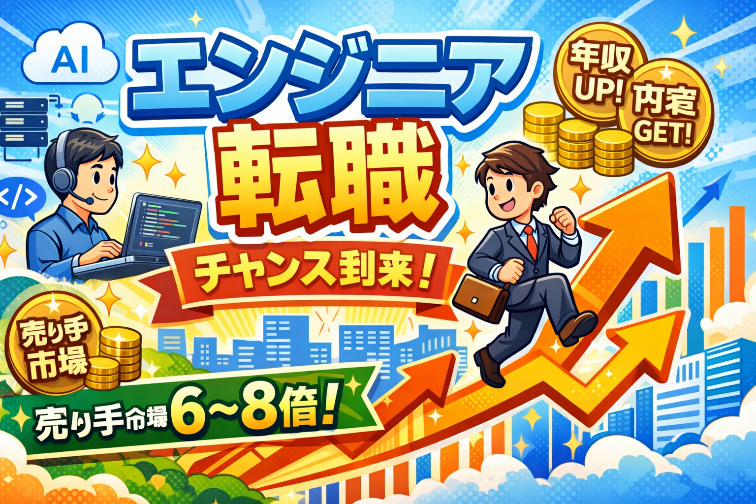 2026年現在、ITエンジニアの有効求人倍率は6〜8倍超と、他の職種を大幅に上回る歴史的な売り手市場が継続しています。正しい戦略と必要スキルを身につけることで、年収アップと働き方改善を同時に実現できる環境が整っています。