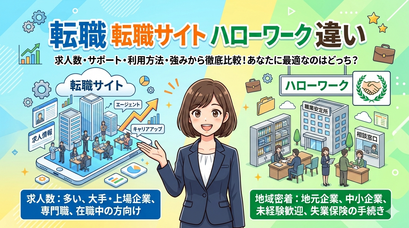 転職サイトとハローワークの違いを徹底比較|求人数・サポート・利用方法から最適な使い分けを解説【2026年最新】