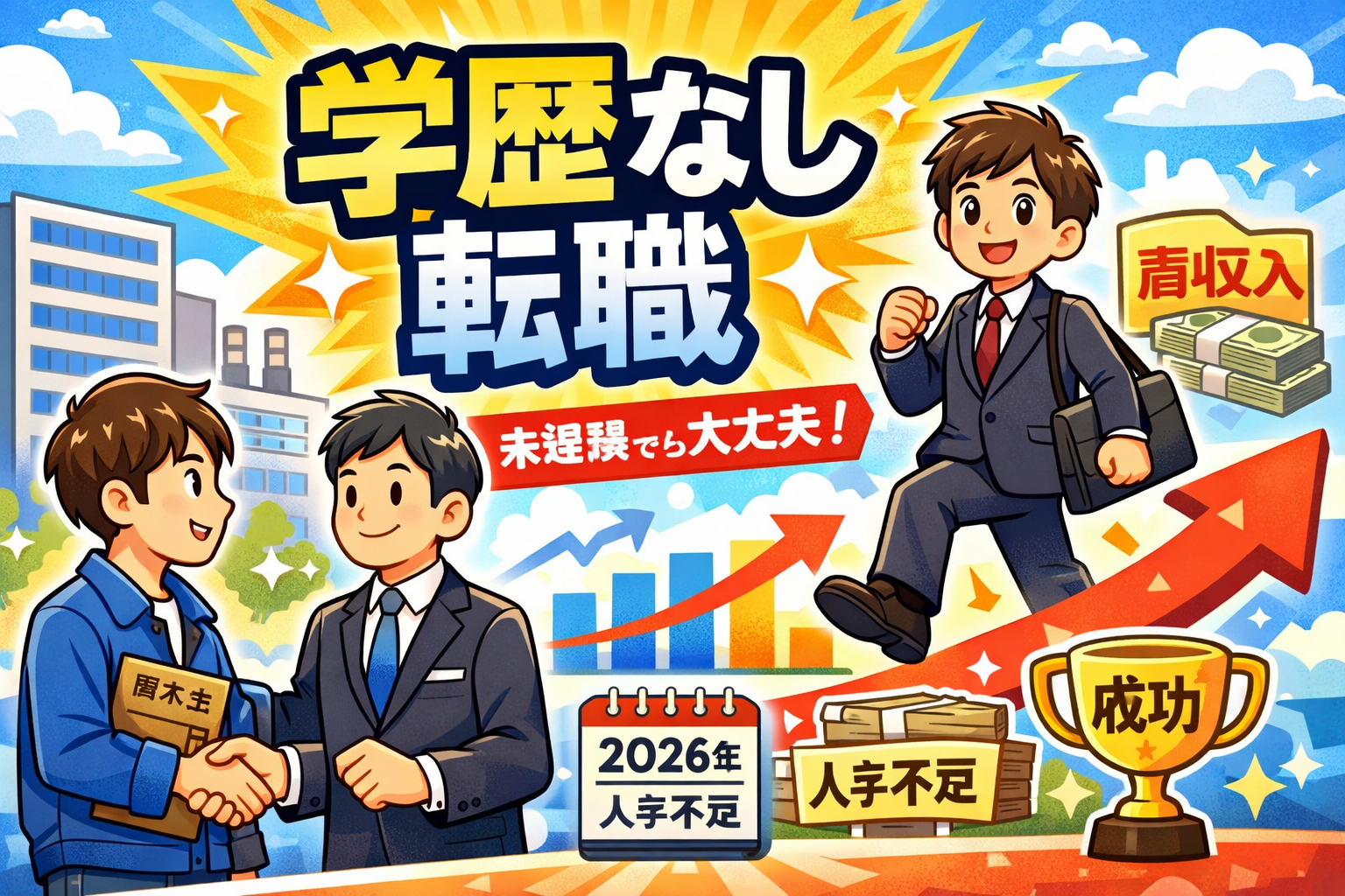 40代の転職は学歴の有無にかかわらずハードルが上がる年代ですが、専門的なスキルやマネジメント経験があれば十分にチャンスはあります。特に建設業、介護業界、運送業など人手不足が深刻な業界では、40代のベテラン人材を積極的に受け入れる企業が増えています。この年代では、転職サイトだけでなく、ハローワークの専門相談窓口や業界特化型のエージェントも併用するのがおすすめです。40代の転職事情については40代転職の現実は厳しい?データで見る成功率・年収変動・書類通過率と後悔しない転職戦略を徹底解説【2026年最新】も合わせてご覧ください。
